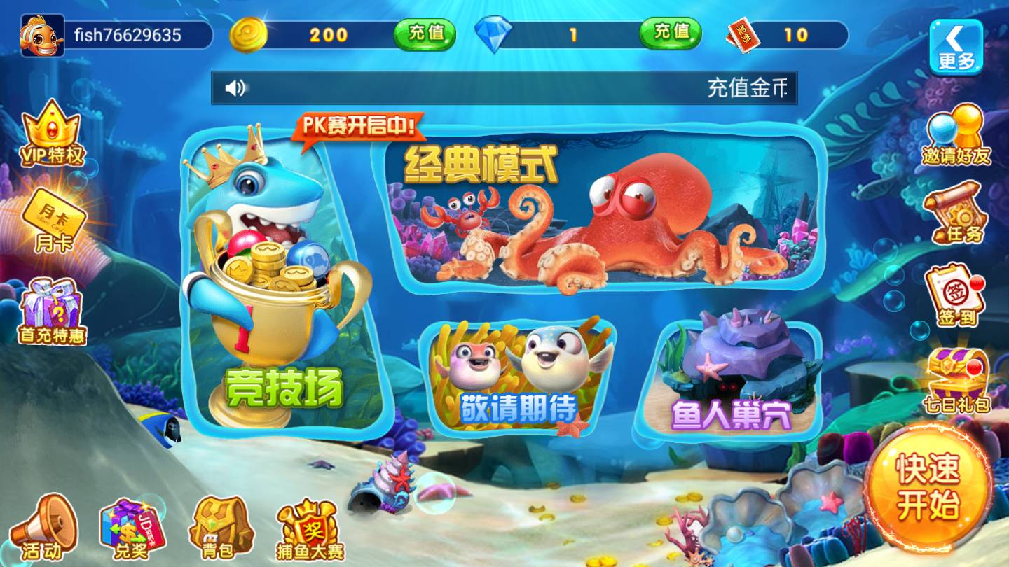 3.多人联机模式:游戏加入了多人联机模式,玩家可以和其他玩家一起组队捕鱼,感受不同寻常的游戏乐趣。