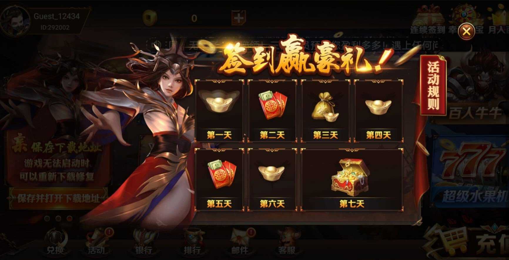 3、不用申请注册,如今就能够 玩,登陆并推送金币。